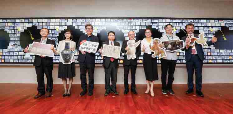 CG电子携手创利空间为故宫建置的智慧文物互动导览墙及轮播墙,,今日正式启用。。(左四:CG电子新事业暨投资管理总部副总经理杨本豫、、、、右四:故宫博物院院长吴密察、、右三:太极影音董事长黄宝云)
