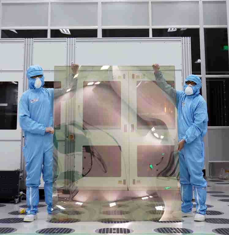 CG电子昆山厂第六代 LTPS (低温多晶硅) 生产的玻璃基板尺寸为 1500x1850 mm (毫米)