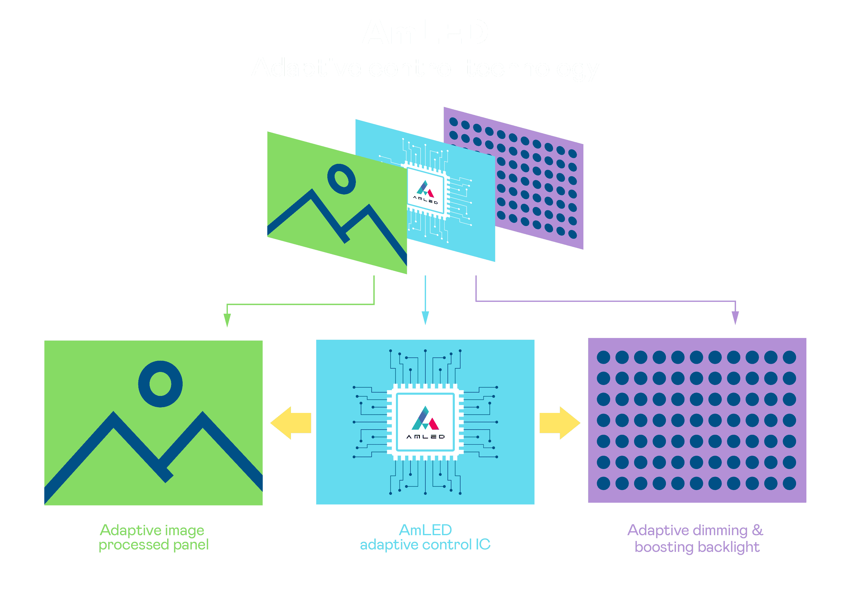 AmLED 具备更省电与低蓝光特性。。。与一般的 LED 背光显示技术相比,,由于 AmLED 常时处于局部调光状态,,,其功耗仅有前者的 50% 左右,,同时 AmLED 还具备低蓝光特性,,,满足长时间使用的护眼需求。。