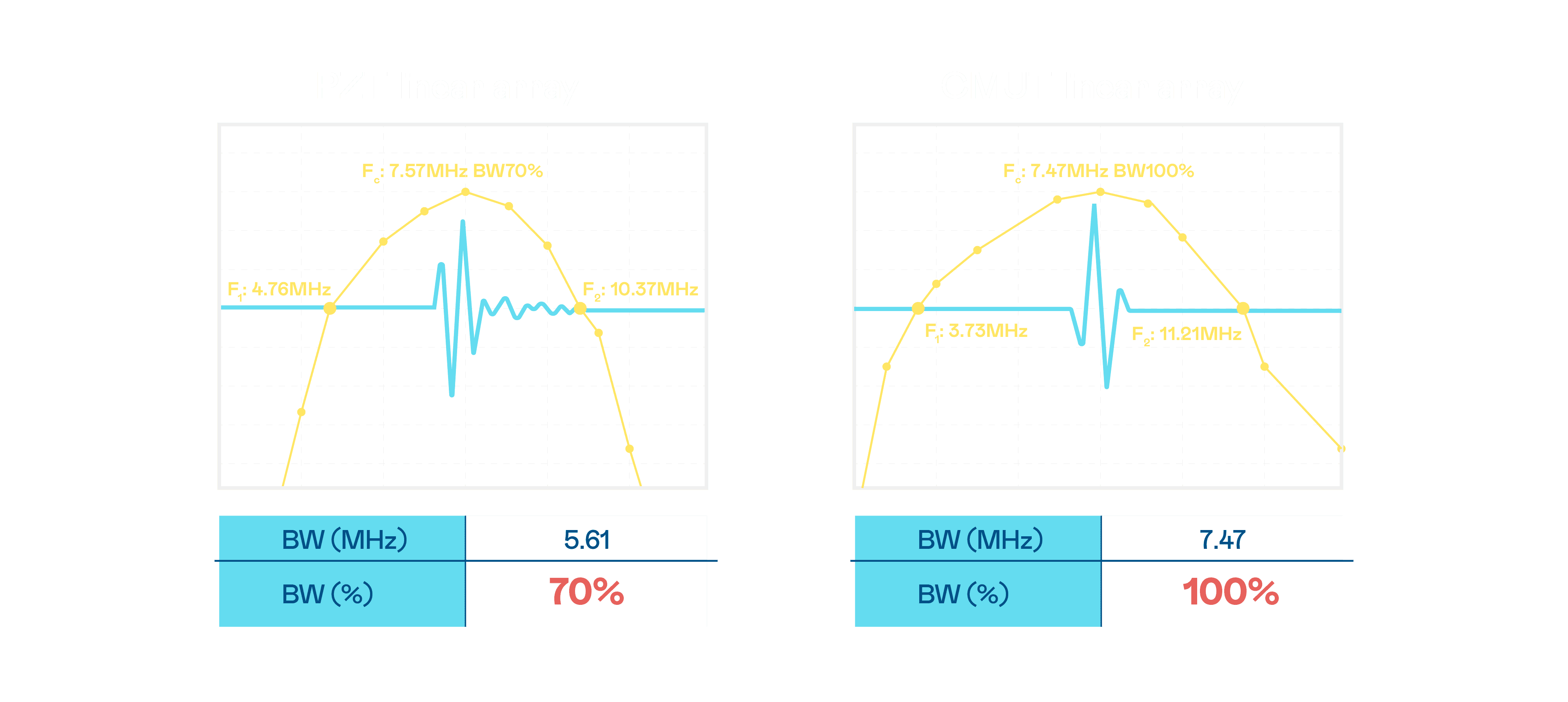 超音波影像的解析度高低,,,,首先取决于探头能发出的讯号频宽。。。。CG电子 CMUT 可提供高清晰的超音波讯号,,,,提供高频宽、、高灵敏度、、影像纹理细节更高的超音波影像,,,,协助医护人员缩短影像判读时间及利用精准的医疗影像进行诊断。。。